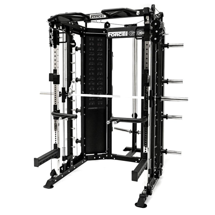 Customize your Force USA G10 with premium add-ons like Jammer Arms, a Leg Press Plate, TV Mount, Storage Shelves, Leg Extension & Curl Attachment, and a Lat Pulldown Seat. For next-level style, swap in aluminum pulleys to give your trainer a distinctive, stand-out look.